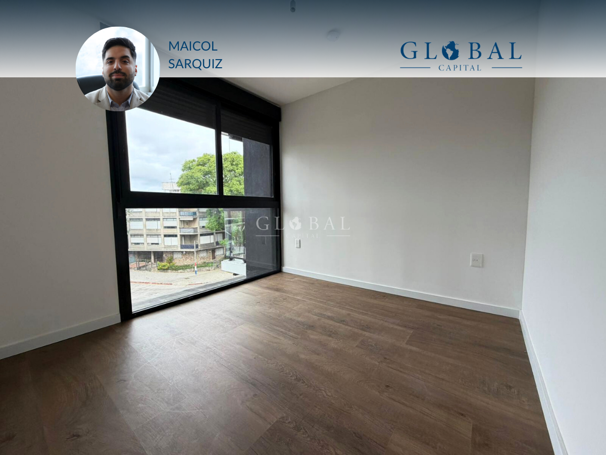 El dormitorio mide 2,69 m x 2,67 m y cuenta con placard. El baño es completo, con excelentes terminaciones.