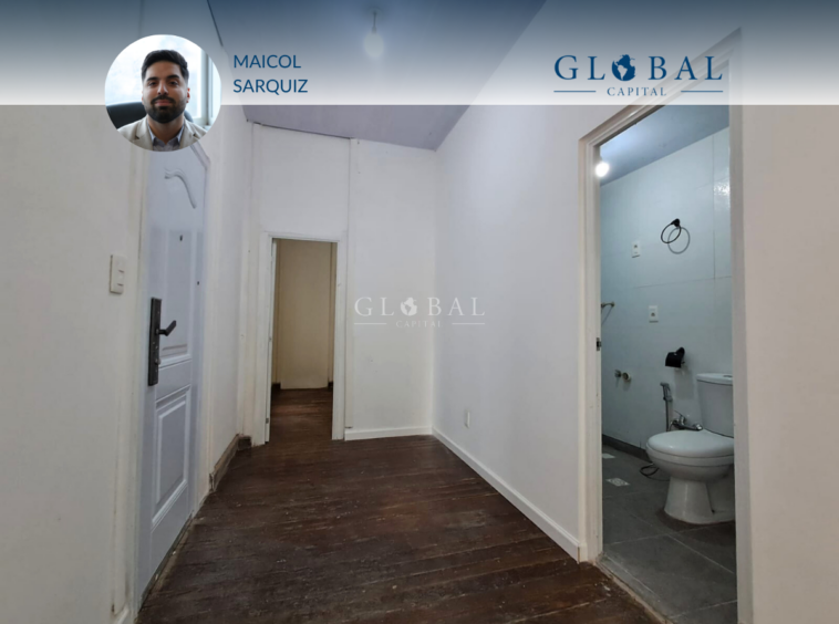 Al ingresar, nos recibe un hall que distribuye los ambientes del apartamento: hacia un cómodo living con cocina integrada y amplios ventanales al frente, que llenan de luz natural todo el espacio; y hacia los dos dormitorios, uno al frente y otro interior, con ventana al espacio común del edificio.