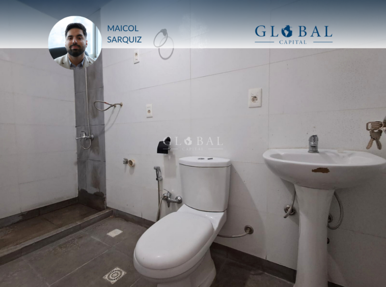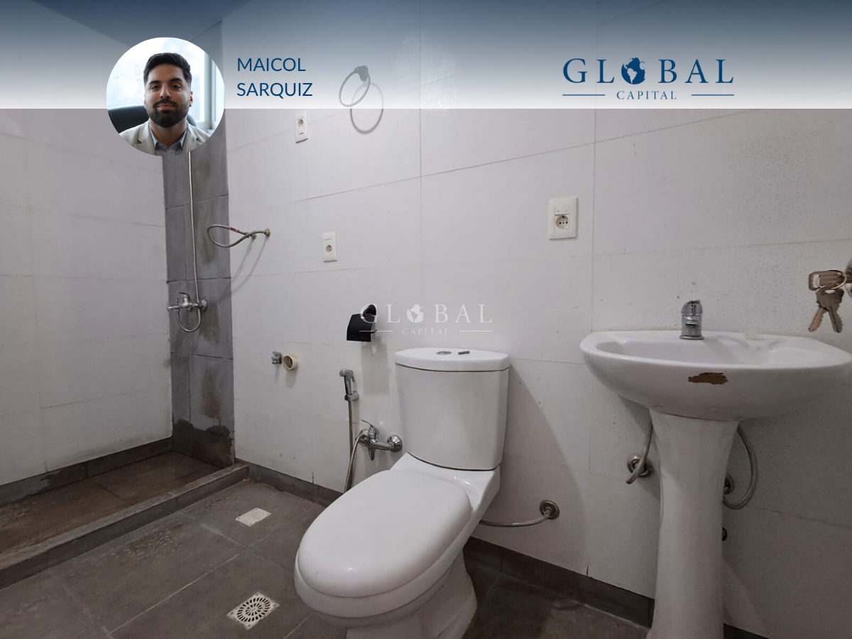 El baño se ubica en el centro de la unidad y cuenta con conexión para calefón y lavarropas.