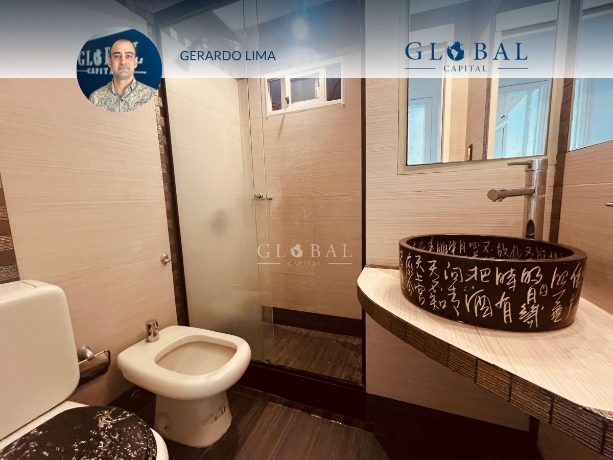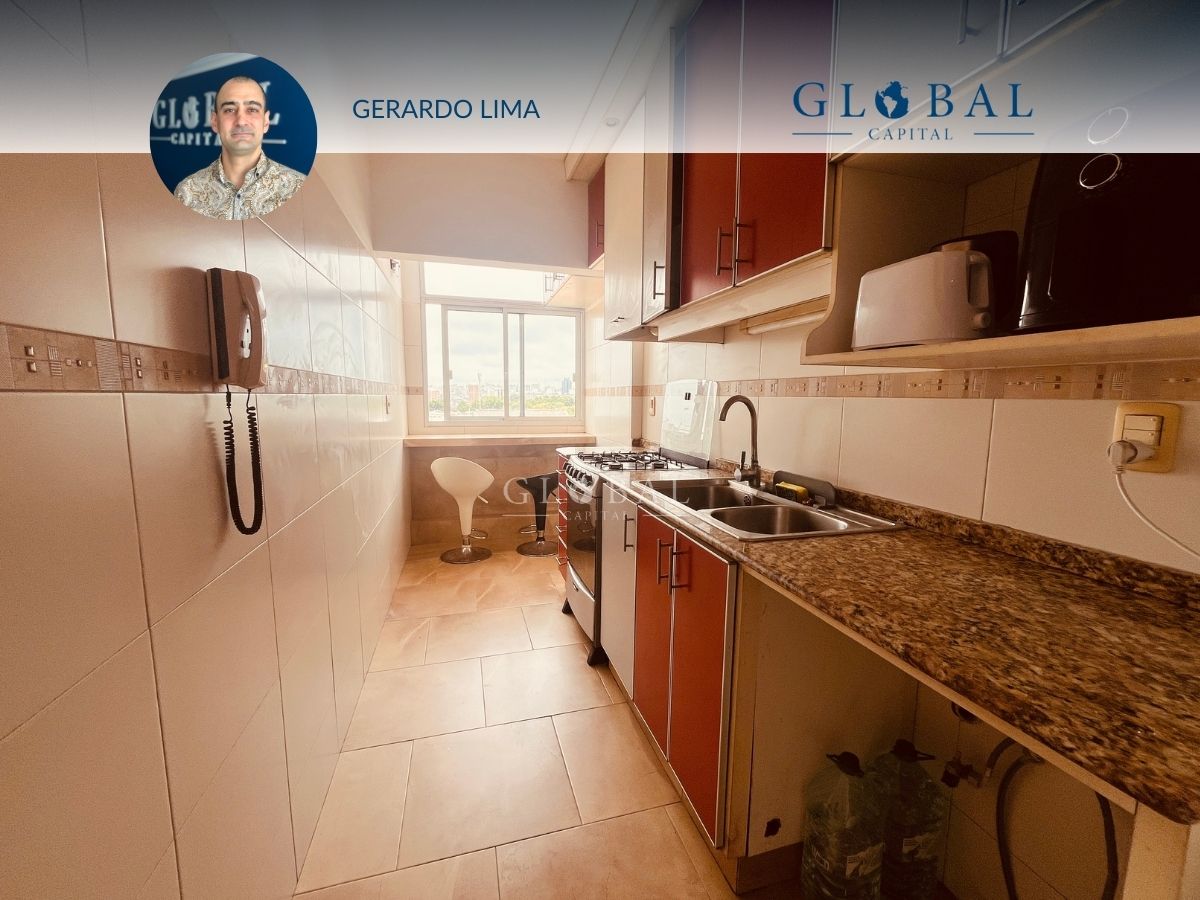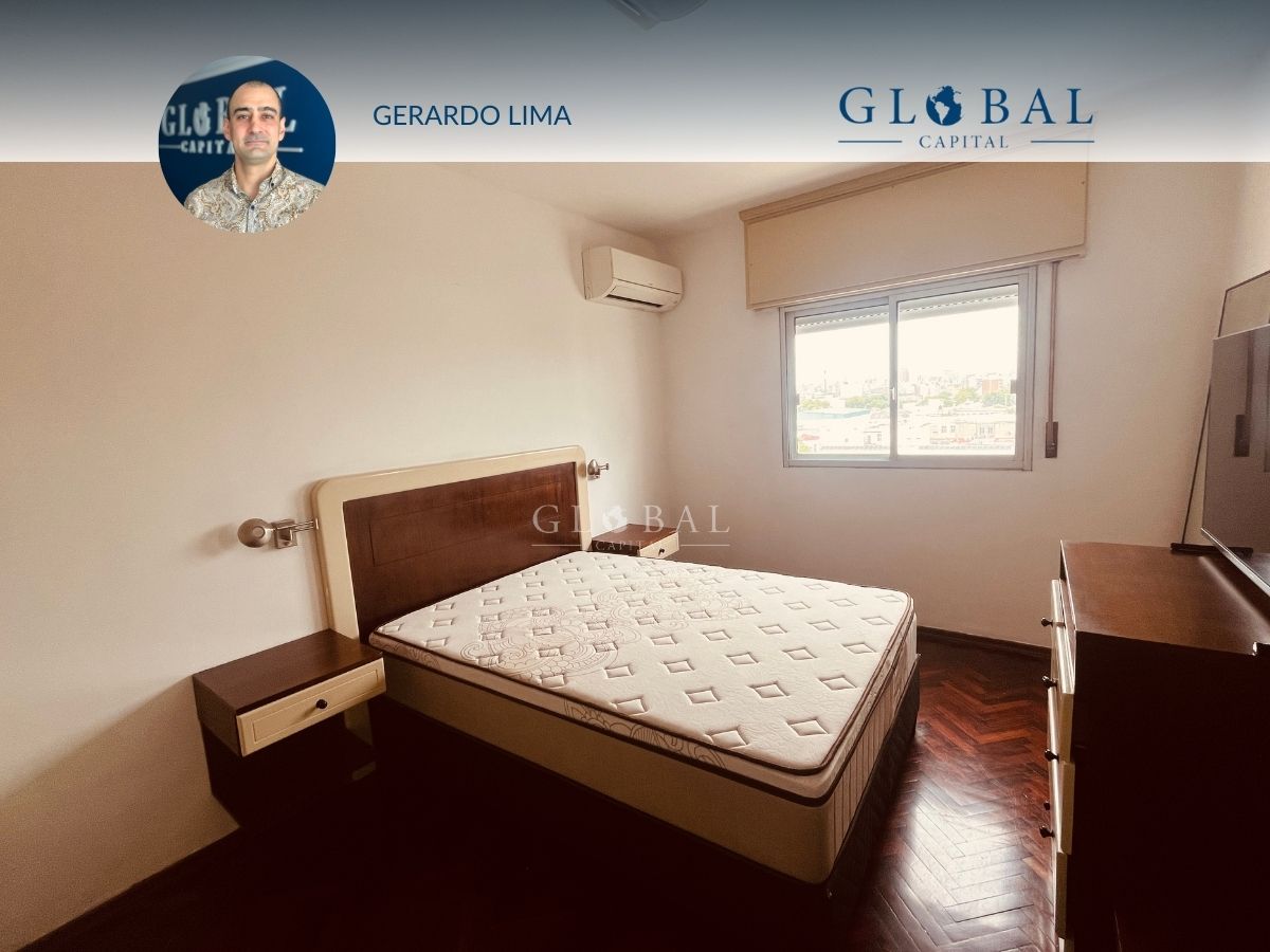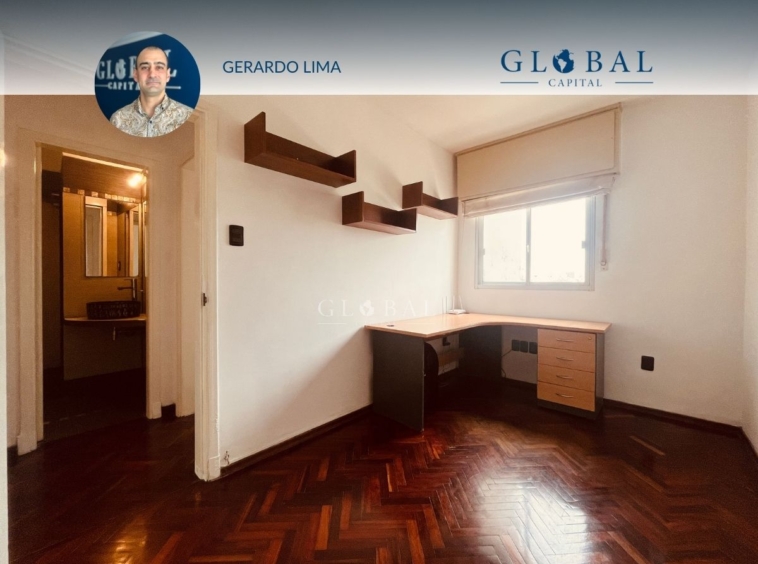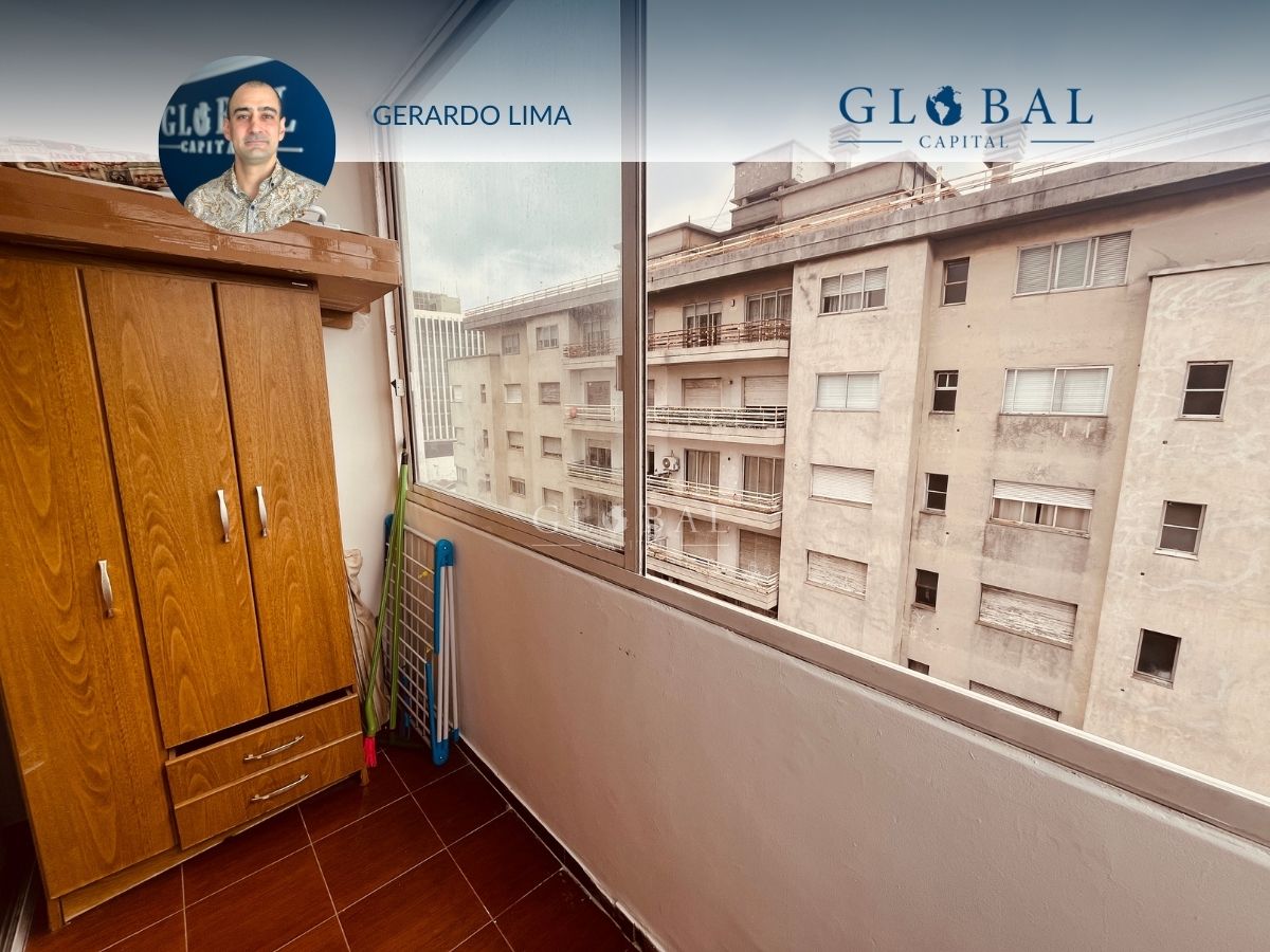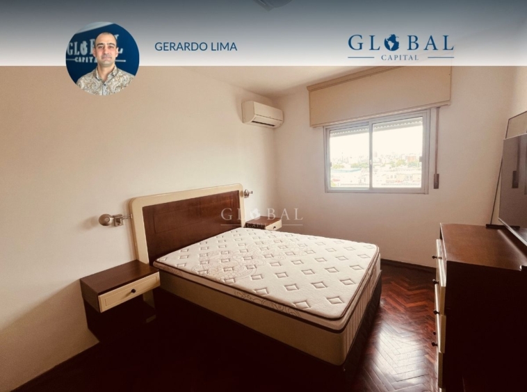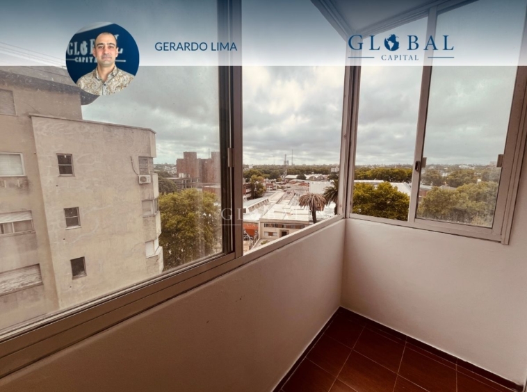 Ubicado en el último piso del edificio, el apartamento tiene vista despejada al frente y al contrafuerte nos ofrece una hermosa vista de la Bahía de Montevideo.